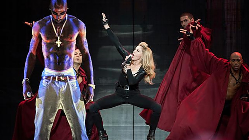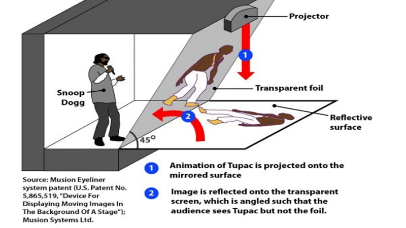 2012 年,Coachella Valley 音乐艺术节, 说唱歌手Tupac Shakur 通过全息影像呈现了 "Hail Mary"的演唱。