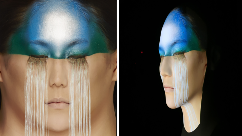 该剧由凯特·冯·德执导,她用化妆技术将自己的脸打造成完美的投影白板。通过光学标记点和光学追踪技术,投影系统实施追踪脸部的位置,并将花朵、蝴蝶等艺术造型准确地投影到脸部设计的位置。一个弦乐四重奏还现场演奏了一首定制的音乐作品。