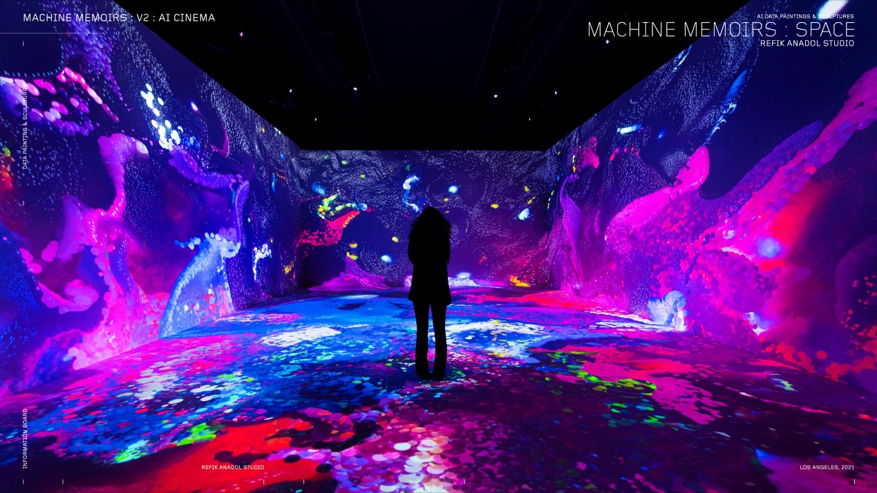 Anadol和他的团队通过使用现代艺术博物馆(Museum of Modern Art)200多年艺术藏品的公共元数据训练人工智能模型,创建了一个独特的人工智能数据绘画展览。生成性研究来自一系列算法人工智能数据绘画,展示了Anadol在技术和美学交叉点与GAN算法的合作。