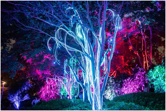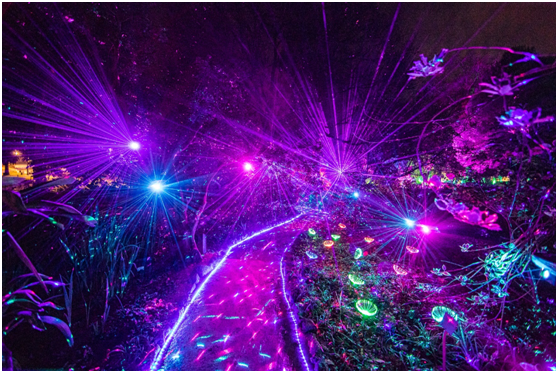灯光装置和互动数字艺术展示与壮观的花园和美丽的步行道相结合,提供了一个迷人的夜间体验,整个游览行程穿越1.5公里长的数字灯光艺术装置,大约需要30分钟-1小时。