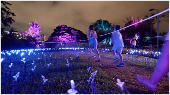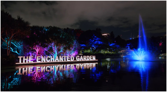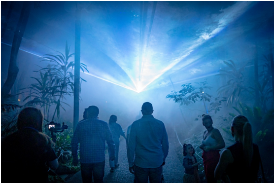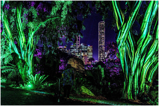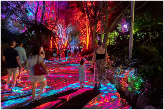 受当地本土动植物的启发,灯光艺术家创作了一个包含水、树木、岩石和花朵等等自然元素的叙事,将空间转变为一个沉浸式和互动式的故事。2022年度“魔法花园”项目拥有近8000平方米的定制灯光、像素映射LED、数字光雕、高功率激光和新开发的互动投影和全息技术,在布里斯班市中心为游客呈现了世界级的数字艺术体验。