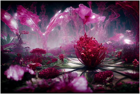 ARTECHOUSE的设计师们使用人工智能艺术生成器Midjourney来解读潘通2023年的年度色彩,通过研究现代技术与人类创造力之间的关系,以此来激发定义Viva Magenta的精神。在人工智能生成工具Midjourney的帮助下,该团队制作了一个身临其境的宇宙,通过融合Pantone 18-1750 Viva Magenta颜色所象征的信息文本,探索自然与技术之间的关系。艺术家对Viva Magenta色彩的理解,以信息文本的方式传递给Midjourney,呈现出的视觉意象,用Viva Magenta上色,最终创造除了Magentaverse,一个无限的新生态系统。