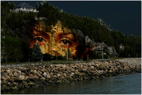 “弃儿码头”位于圣保罗街附近的一条狭窄小巷中,是对照顾蒙特利尔众多孤儿的灰修女们的致敬。地上出现了一系列襁褓中的婴儿,而修女们则走出小巷一侧的阴影,靠着远处的墙壁。也许拍摄最多的画面是“蒙特利尔的面孔”:一系列背诵诗歌的面孔,展示在老港口的树上。