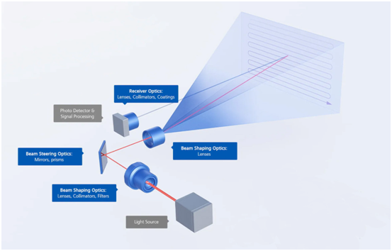 LiDAR的首字母缩写意思是Light Detection and Ranging,即光探测和测距。这是一种可以确定障碍物离传感器有多远的计算方法。通过这种技术开发出来的激光雷达使用激光束进行探测、分析和跟踪。