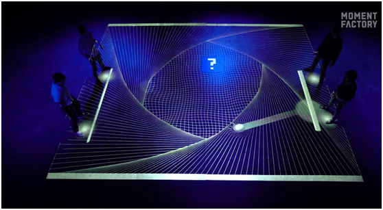 经过一年的开发,设计公司Moment Factory已经成功实现了GRiD,一个大规模的真实版Pong游戏。该游戏使用激光雷达来跟踪玩家的动作,让两人一组在一个巨大的投影游戏板上操作球的挡板块。
