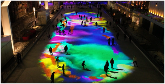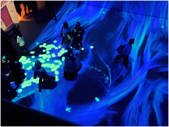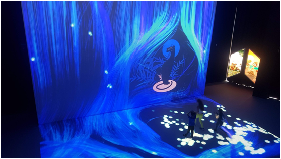 游客经过的地方会产生一个力场,将水流搅动。花朵随着游客的移动而生长,与观众产生了一种空间互动,让游客沉浸在丛林中美妙瀑布的神秘感中。
