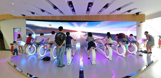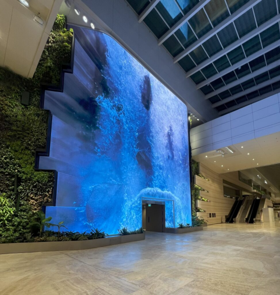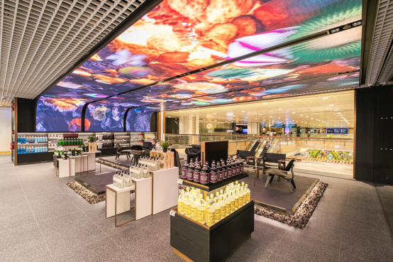 在焕然一新的T2中,大自然主题占据了中心舞台,最引人注目的是一个令人惊叹的14米高的数字瀑布展示,被称为“奇迹瀑布”。 。制作这面巨大的LED墙需要892块单独的LED模组,无缝连接成三个大而平的部分。曲面LED屏幕还保证您在任何位置都能有良好的观感。