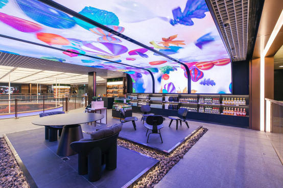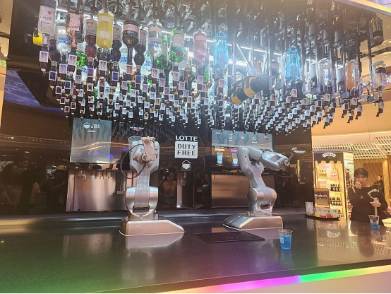 在新的零售和餐饮产品中,乐天免税葡萄酒和烈酒公司横跨两层楼,拥有一个机器人调酒师一个品酒休息室和一个30米长的LED环,让人想起湖面上反射的月亮。上层的李白森林是一个豪华的休息室。在这里,游客还可以使用智能自拍镜与著名K-pop艺术家合影。
