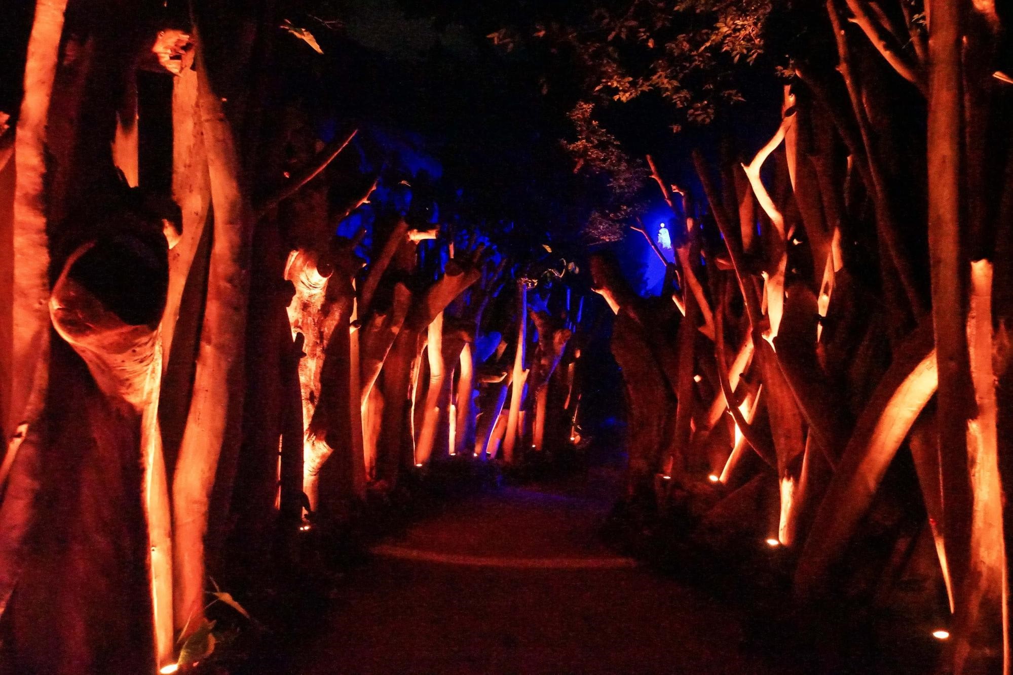 夜游的主题是“我们是一体的”,Rainforest lumina试图将人类、动物和自然相互联系的信息传达给大家,每个人都在维持地球生命方面发挥着至关重要的作用。将新加坡动物园改造成一个光与声的神奇景观,再加上与生物团队的互动,游客们将踏上一段充满魅力的旅程,每一个转折点都会激发灵感,培养对自然和野生动物的热爱。
