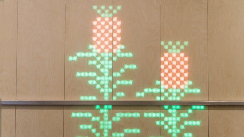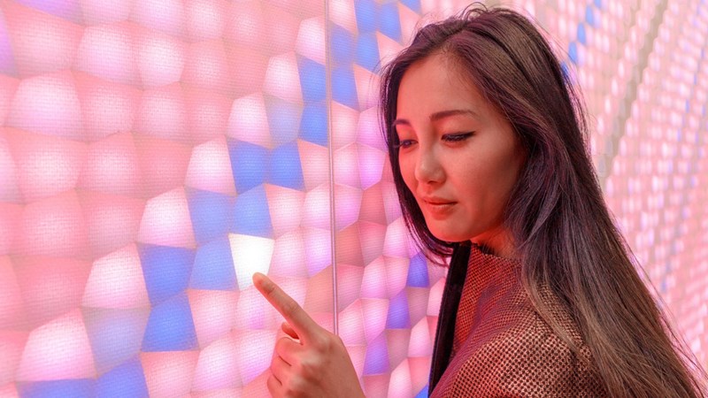 与传统的LED屏幕不同,LUMES的数码墙纸是柔和的,富有亲和力的。