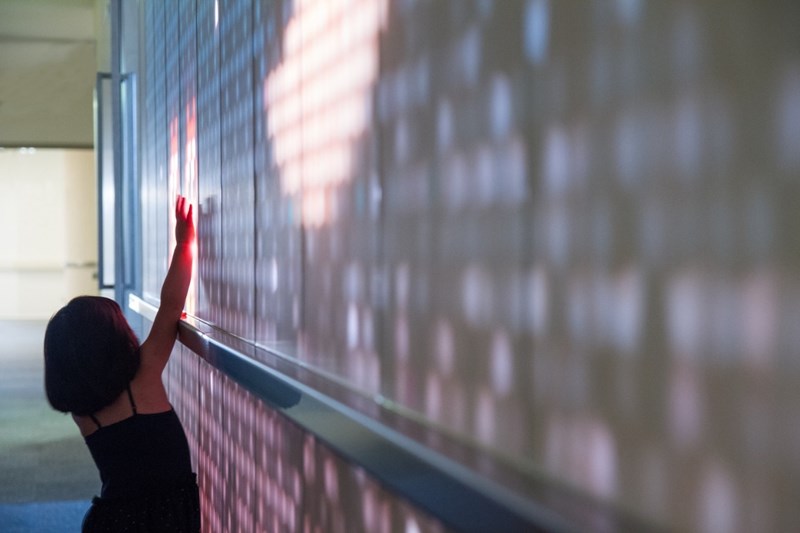 这种数码墙纸技术把墙壁被转化成一种发光材料,借由激光雷达让人们与墙壁产生互动。通过探测更深层次的人类活动,包括指尖触摸,肢体动作,开辟了新的可能性,建筑可以对空间内的人作出反应。